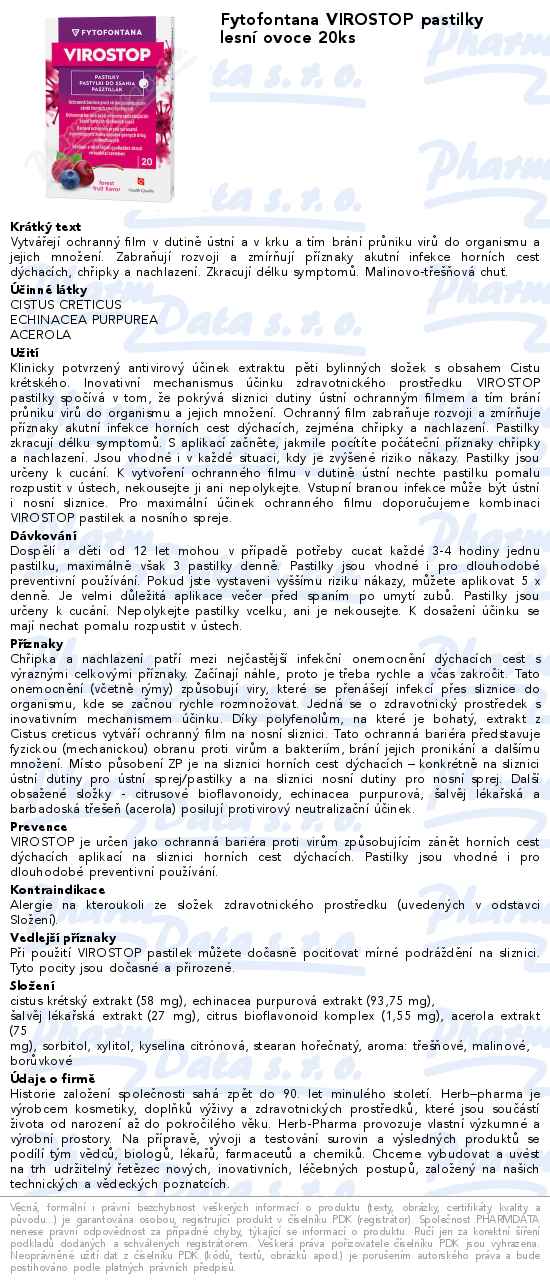 Fytofontana VIROSTOP pastilky lesní ovoce 20ks