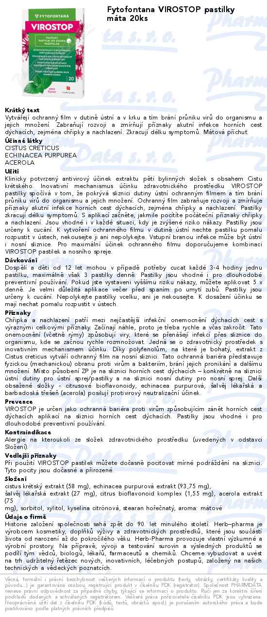 Fytofontana VIROSTOP pastilky máta 20ks
