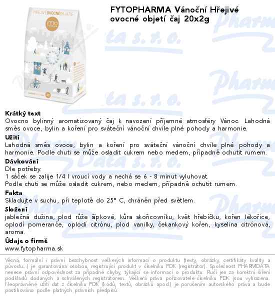 FYTOPHARMA Vánoční Hřejivé ovocné objetí čaj 20x2g