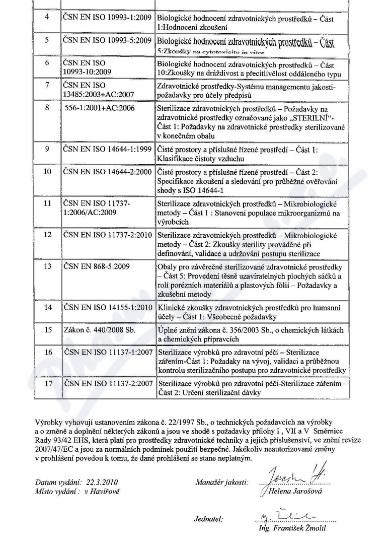 2 strany prohlášení o shodě: strana 1, strana 2,
