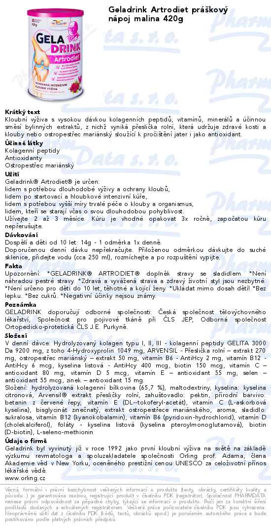 Geladrink Artrodiet práškový nápoj malina 420g