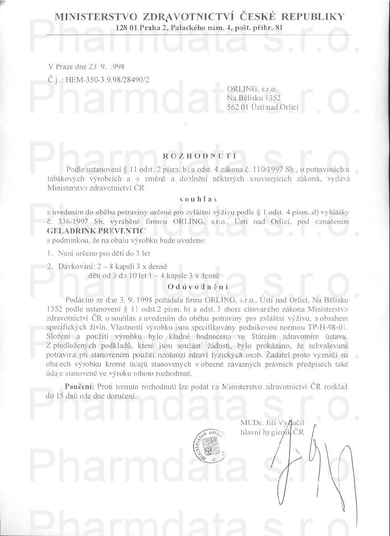 osvědčení hlavního hygienika