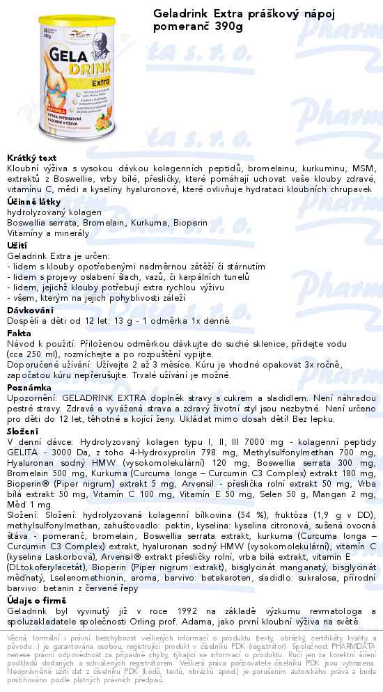 Geladrink Extra práškový nápoj pomeranč 390g