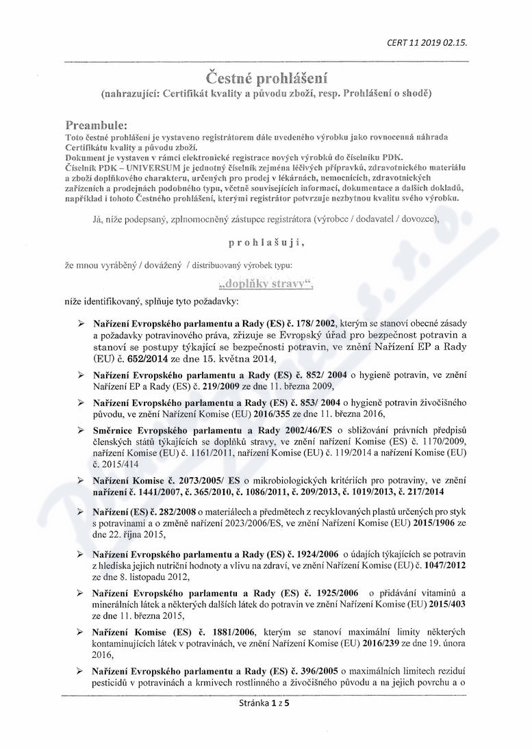 5 strany čestného prohlášení: strana 1, strana 2, strana 3, strana 4, strana 5,
