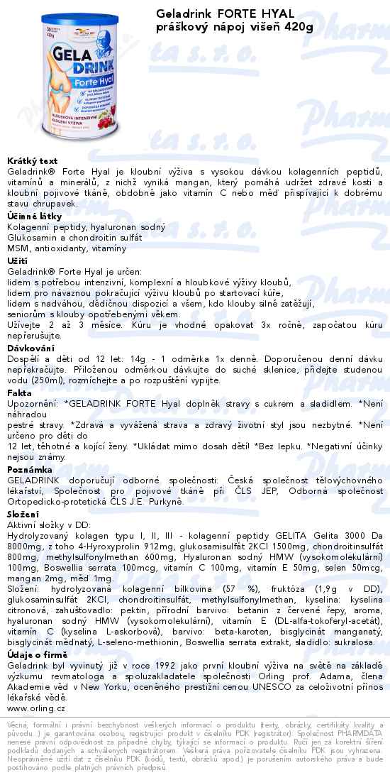 Geladrink FORTE HYAL práškový nápoj višeň 420g