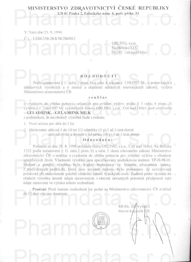 osvědčení hlavního hygienika