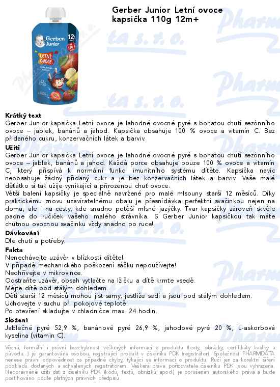 Gerber Junior Letní ovoce kapsička 110g 12m+