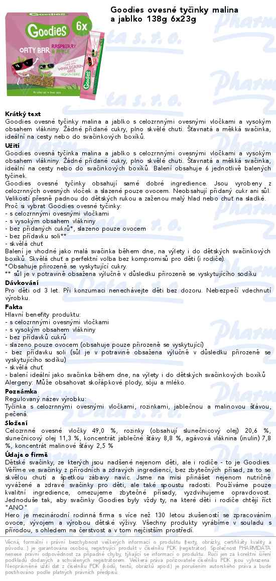 Goodies ovesné tyčinky malina a jablko 138g 6x23g