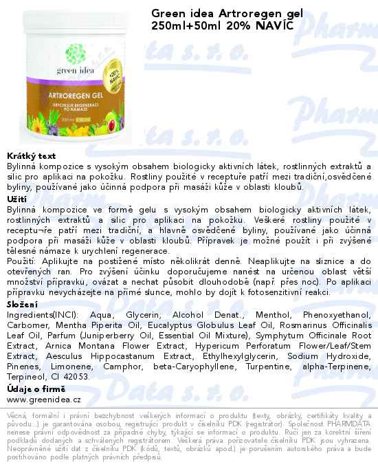 Green idea Artroregen gel 250ml+50ml 20% NAVÍC