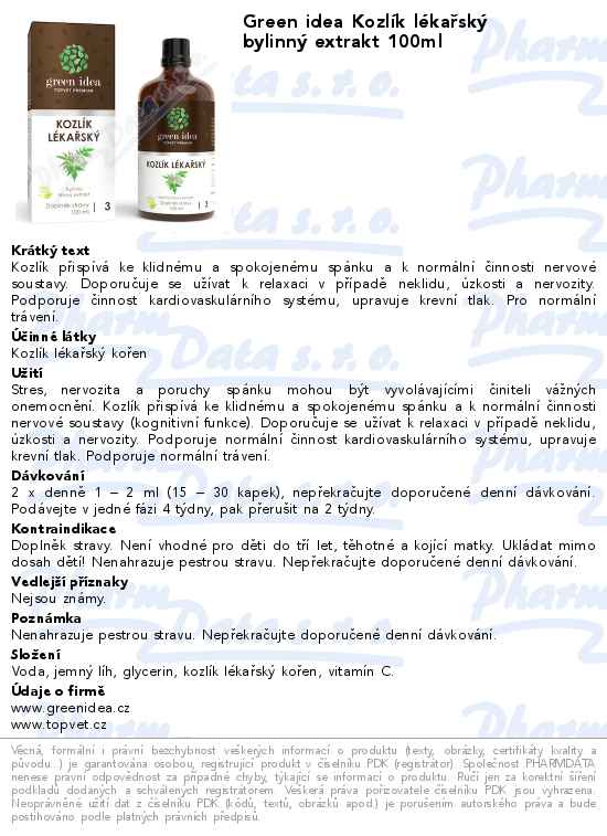 Green idea Kozlík lékařský bylinný extrakt 100ml