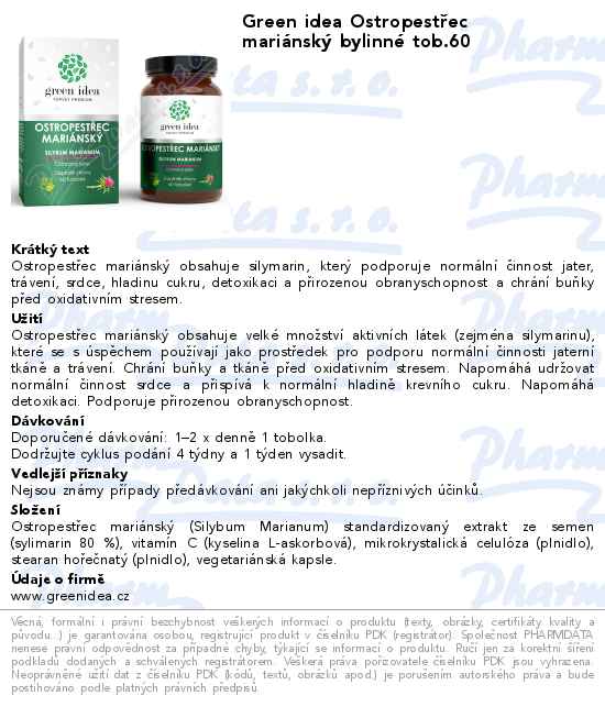 Green idea Ostropestřec mariánský bylinné tob.60