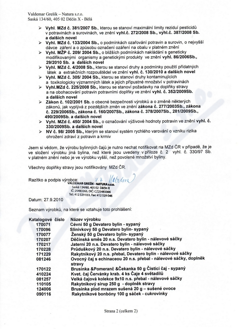 Výrobce: VALDEMAR GREŠÍK - NATURA S.R.O.