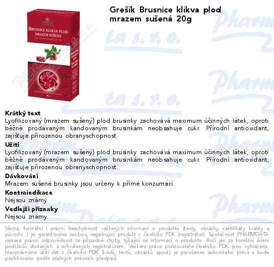 Grešík Brusnice klikva plod mrazem sušená 20g