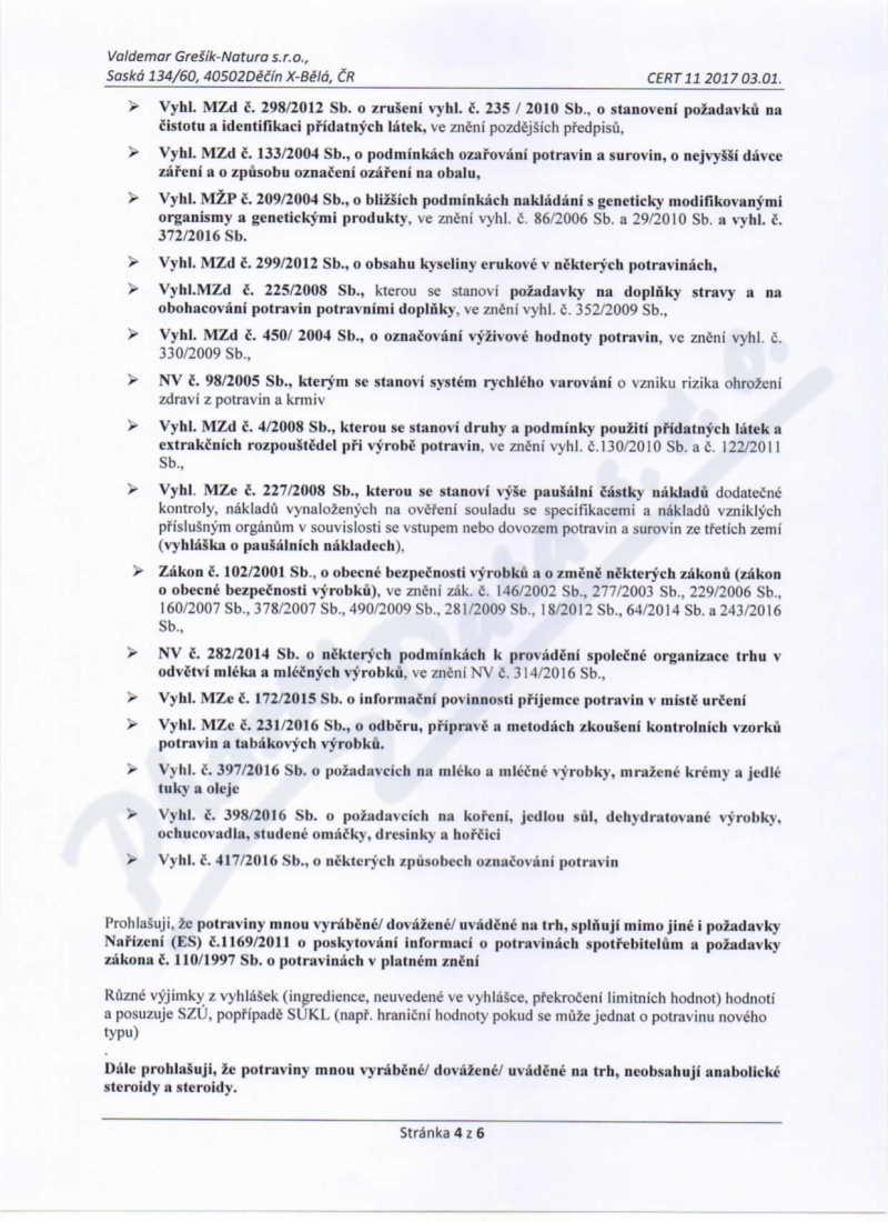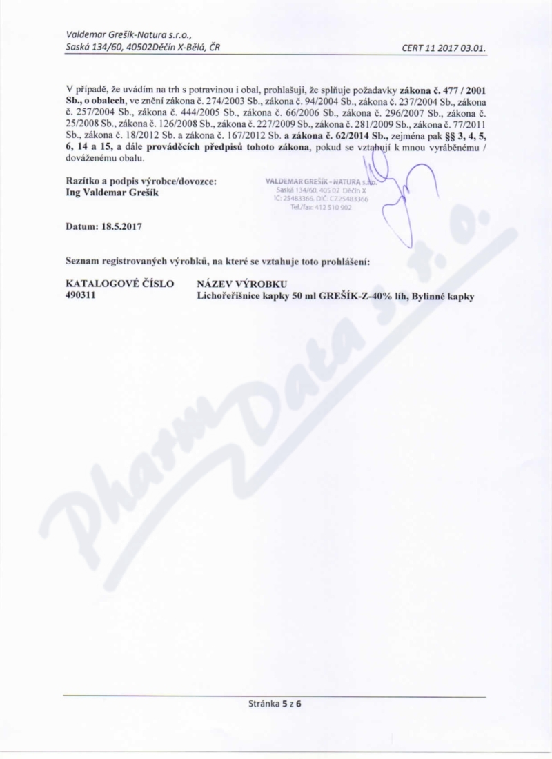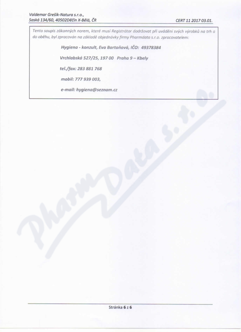 Výrobce: VALDEMAR GREŠÍK - NATURA S.R.O.