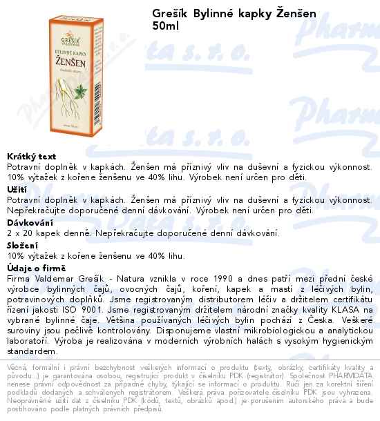 Grešík Bylinné kapky Ženšen 50ml
