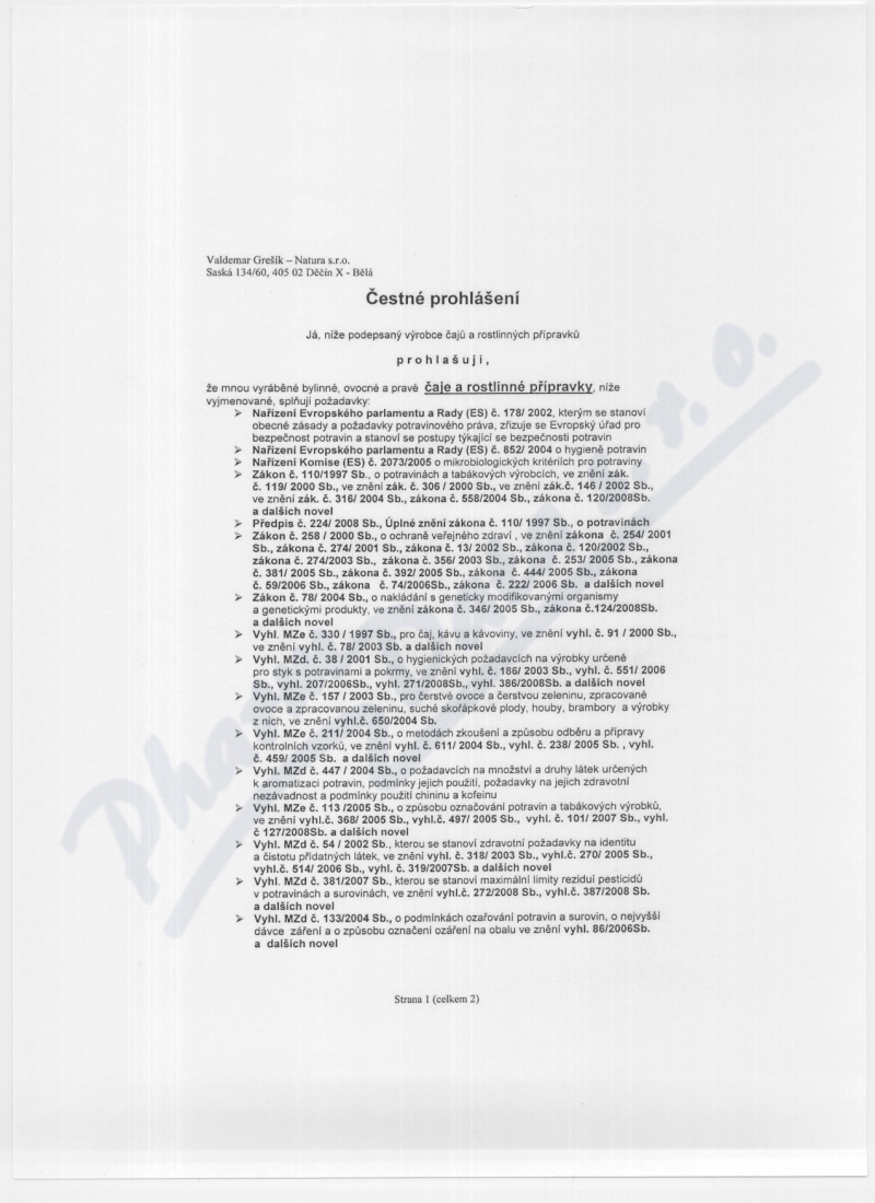 Výrobce: VALDEMAR GREŠÍK - NATURA S.R.O.