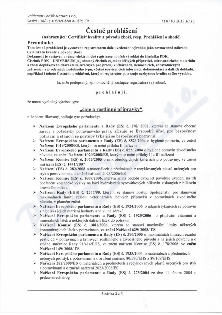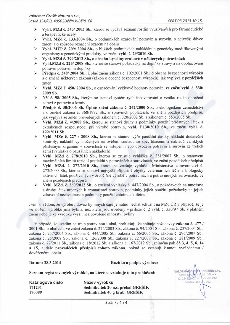 Výrobce: VALDEMAR GREŠÍK - NATURA S.R.O.