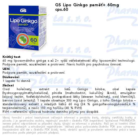 GS Lipo Ginkgo paměť+ 60mg cps.60