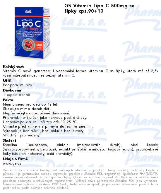 GS Vitamin Lipo C 500mg se šípky cps.90+10