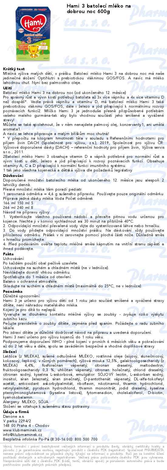 Hami 3 batolecí mléko na dobrou noc 600g