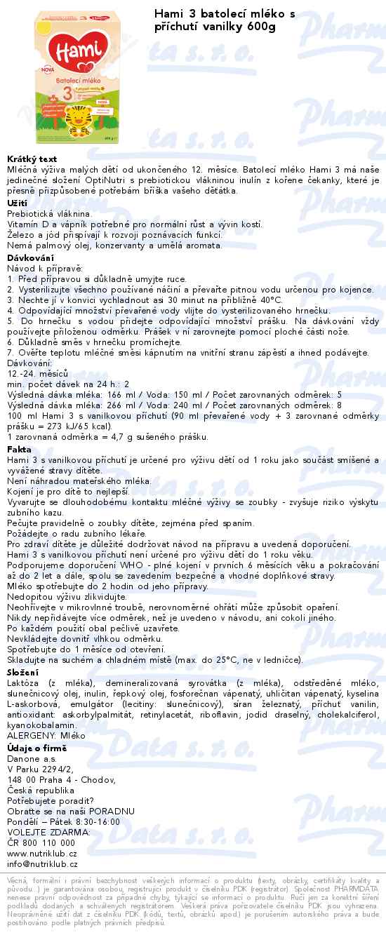 Hami 3 batolecí mléko s příchutí vanilky 600g