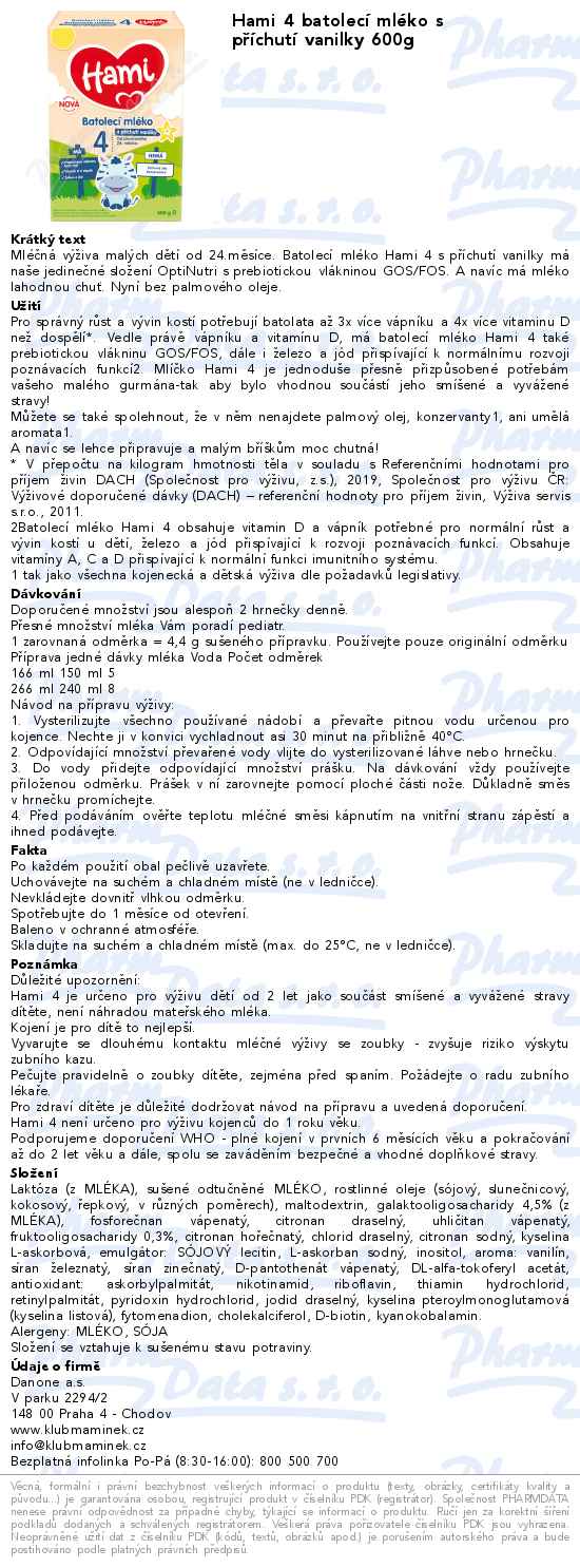 Hami 4 batolecí mléko s příchutí vanilky 600g
