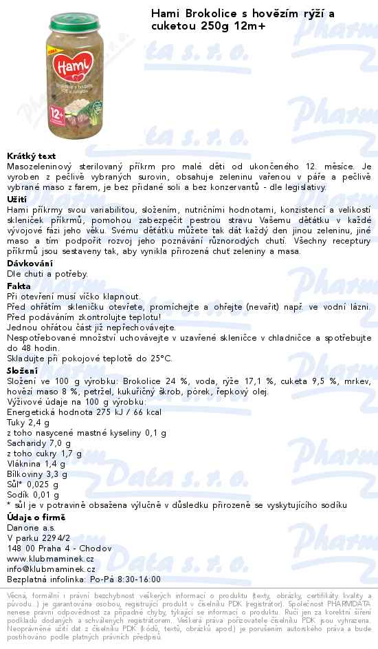 Hami Brokolice s hovězím rýží a cuketou 250g 12m+