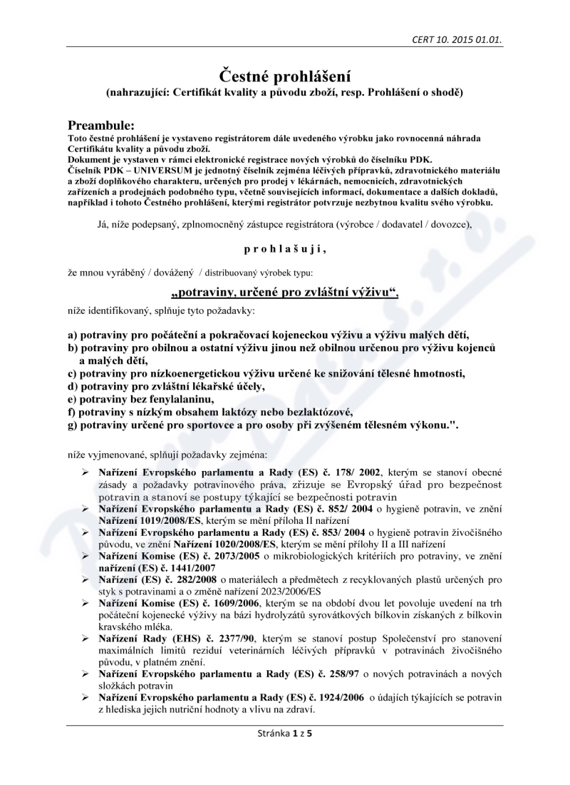 5 strany čestného prohlášení: strana 1, strana 2, strana 3, strana 4, strana 5,