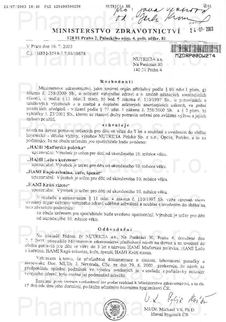 osvědčení hlavního hygienika