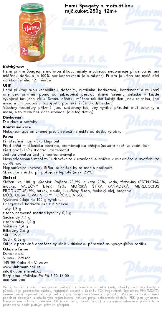 Hami Špagety s mořs.štikou rajč.cuket.250g 12m+