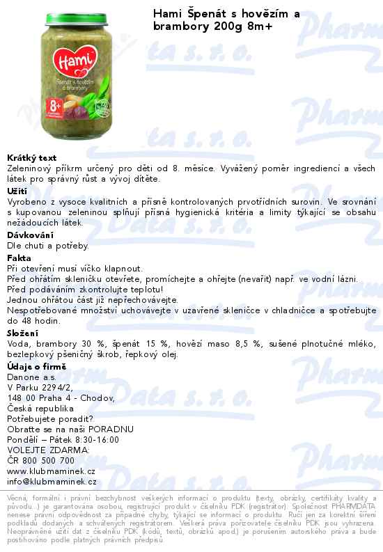 Hami Špenát s hovězím a brambory 200g 8m+