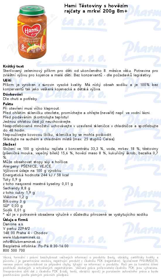 Hami Těstoviny s hovězím rajčaty a mrkví 200g 8m+