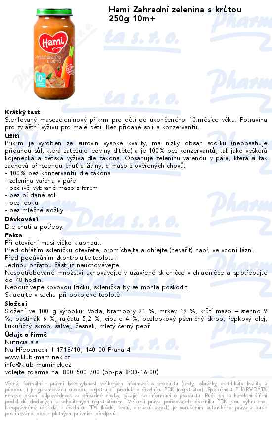 Hami Zahradní zelenina s krůtou 250g 10m+
