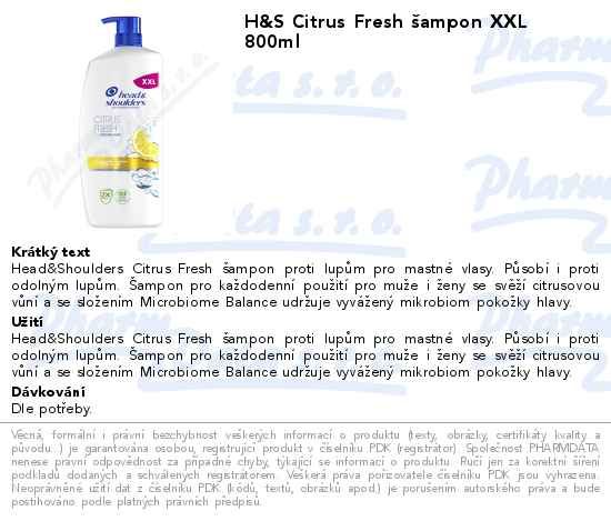 H&S Citrus Fresh šampon XXL 800ml