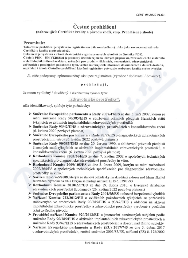 3 strany čestného prohlášení: strana 1, strana 2, strana 3,