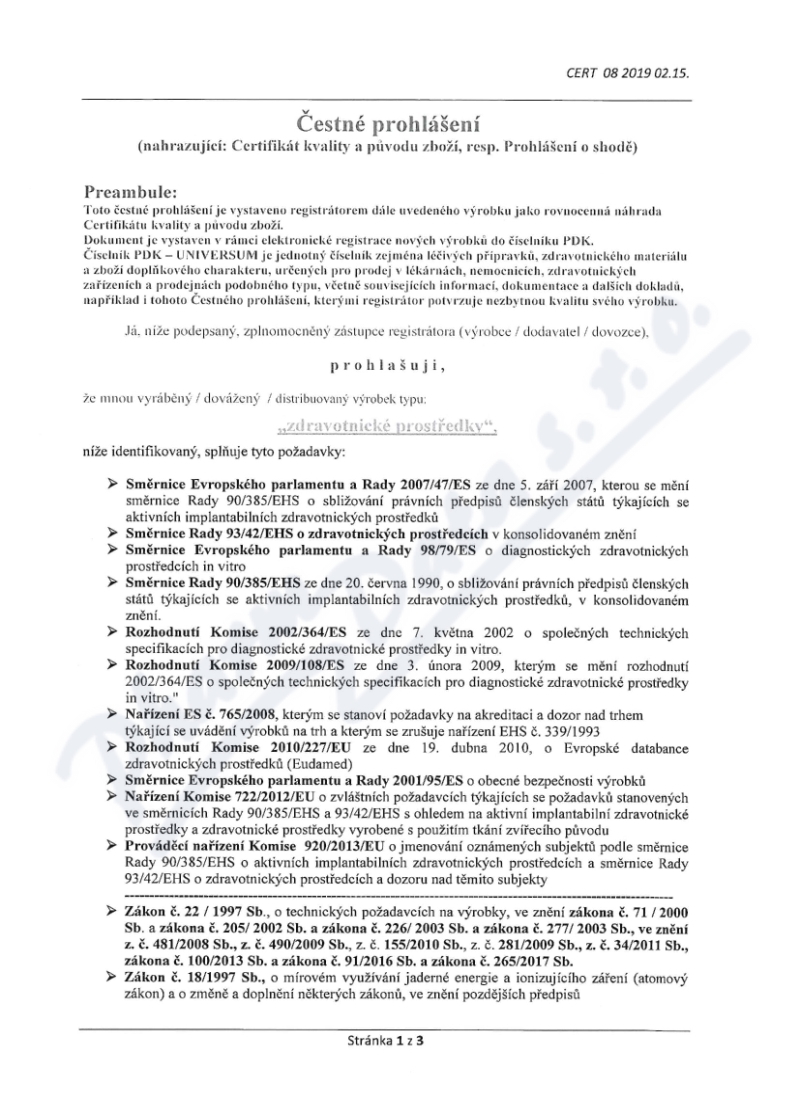 3 strany prohlášení o shodě: strana 1, strana 2, strana 3,