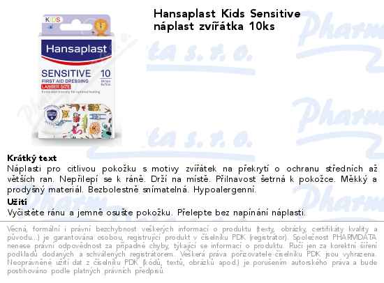Hansaplast Kids Sensitive náplast zvířátka 10ks