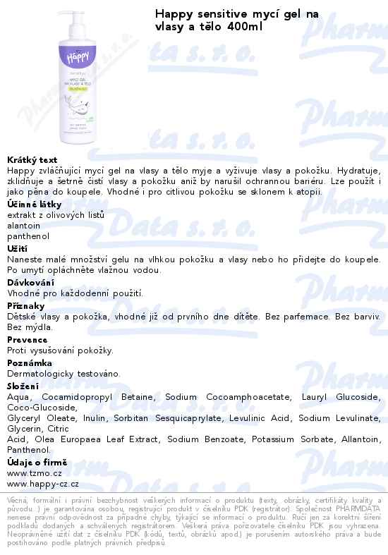Happy sensitive mycí gel na vlasy a tělo 400ml