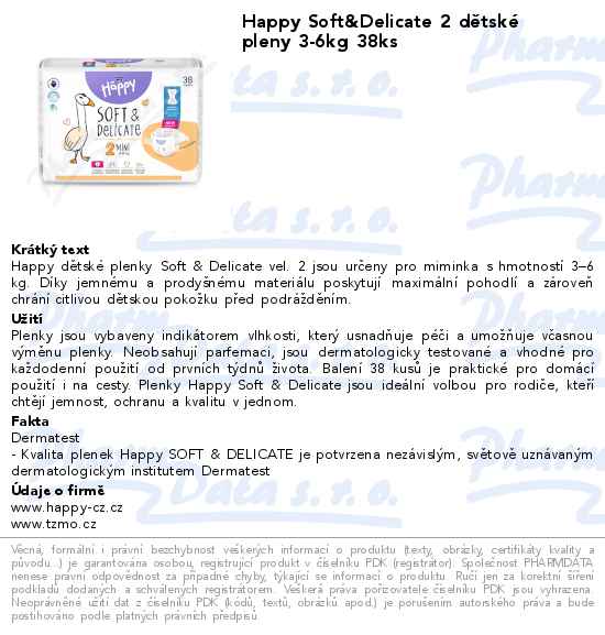 Happy Soft&Delicate 2 dětské pleny 3-6kg 38ks