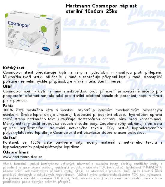 Hartmann Cosmopor náplast sterilní 10x6cm 25ks