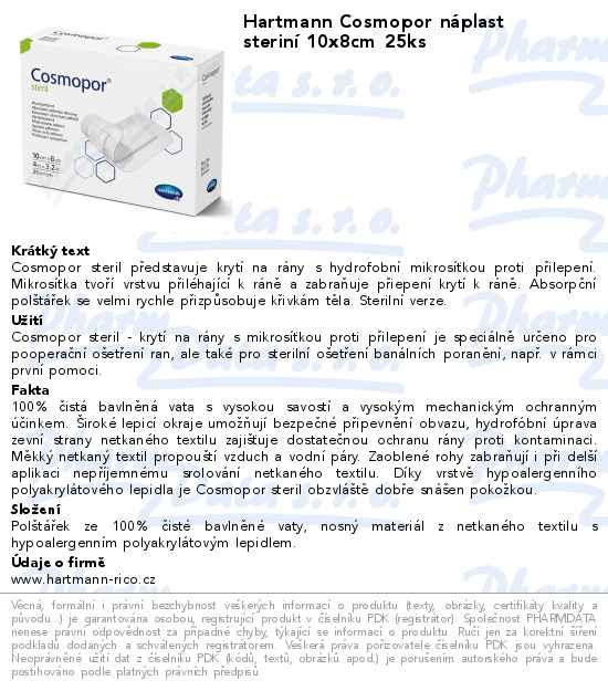 Hartmann Cosmopor náplast steriní 10x8cm 25ks