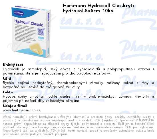 Hartmann Hydrocoll Clas.krytí hydrokol.5x5cm 10ks