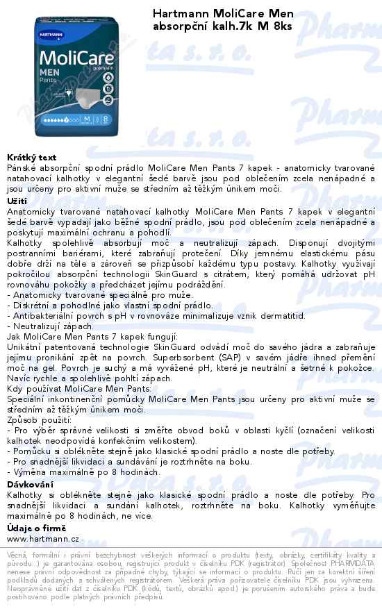 Hartmann MoliCare Men absorpční kalh.7k M 8ks