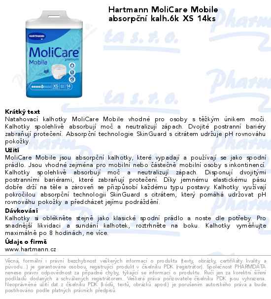 Hartmann MoliCare Mobile absorpční kalh.6k XS 14ks