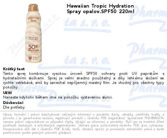 Hawaiian Tropic Hydration Spray opalov.SPF50 220ml