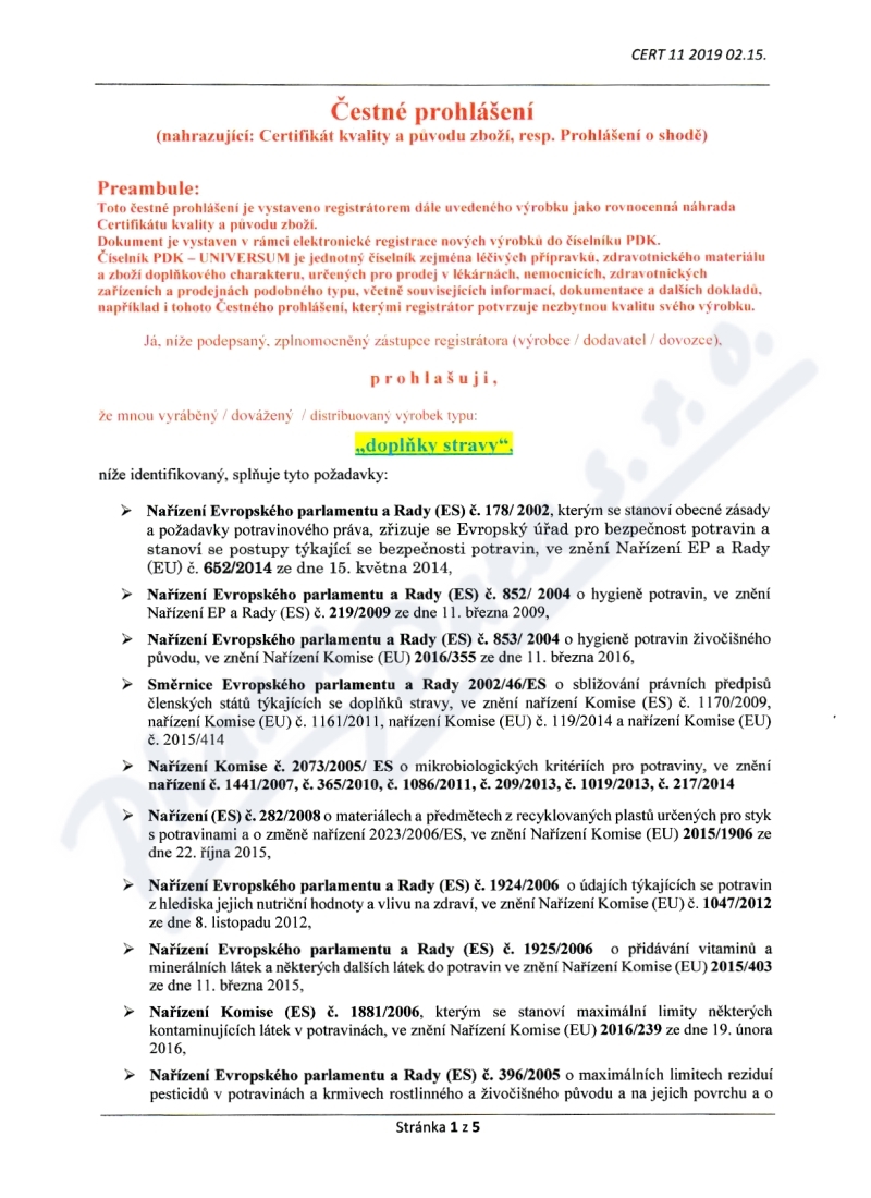 5 strany čestného prohlášení: strana 1, strana 2, strana 3, strana 4, strana 5,