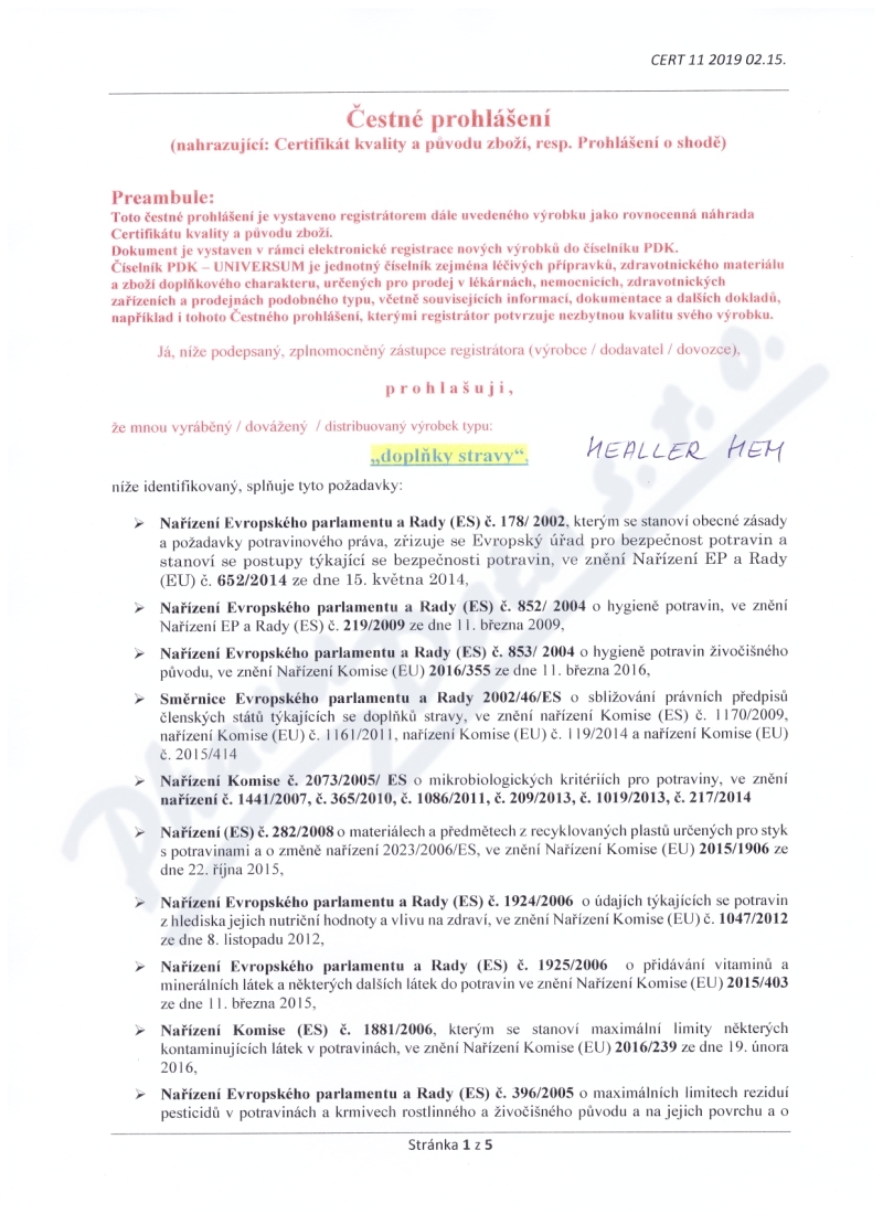 5 strany čestného prohlášení: strana 1, strana 2, strana 3, strana 4, strana 5,