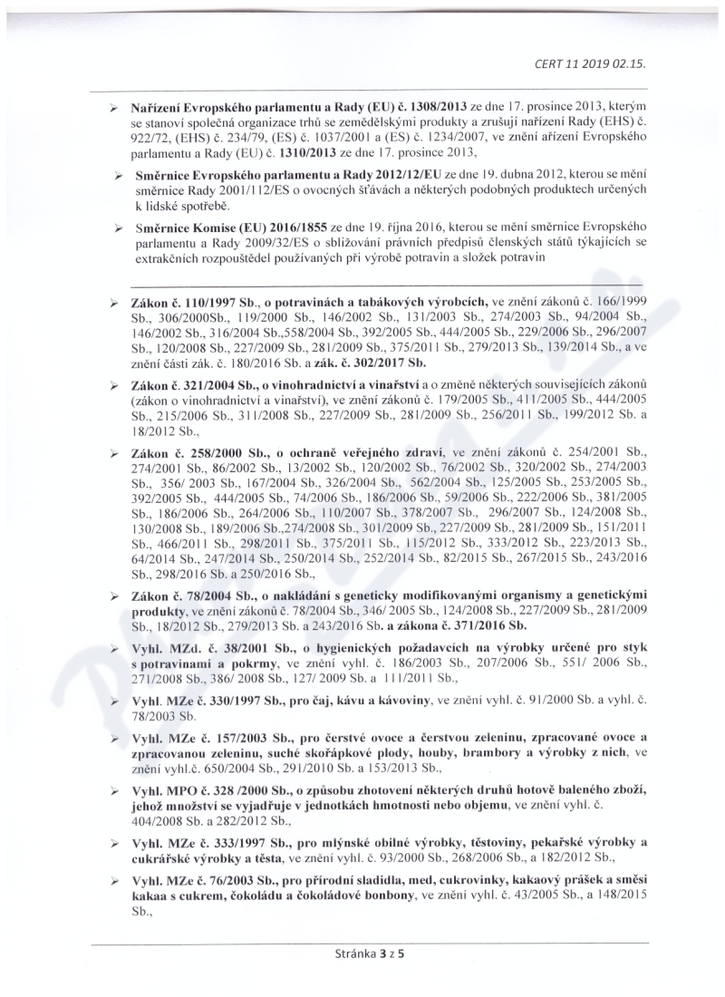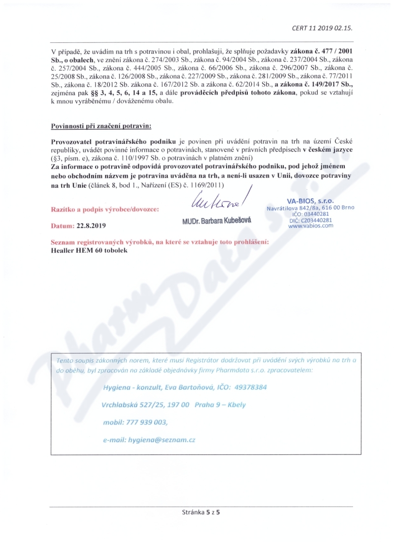 osvědčení hlavního hygienika