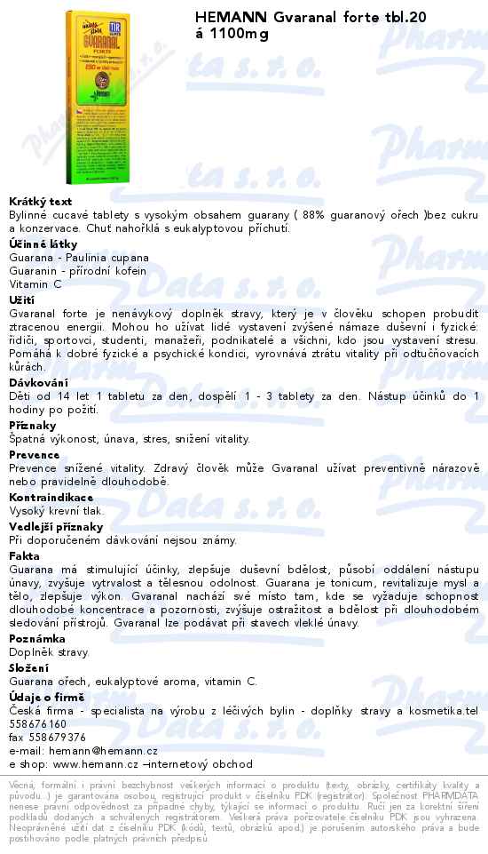 HEMANN Gvaranal forte tbl.20 á 1100mg