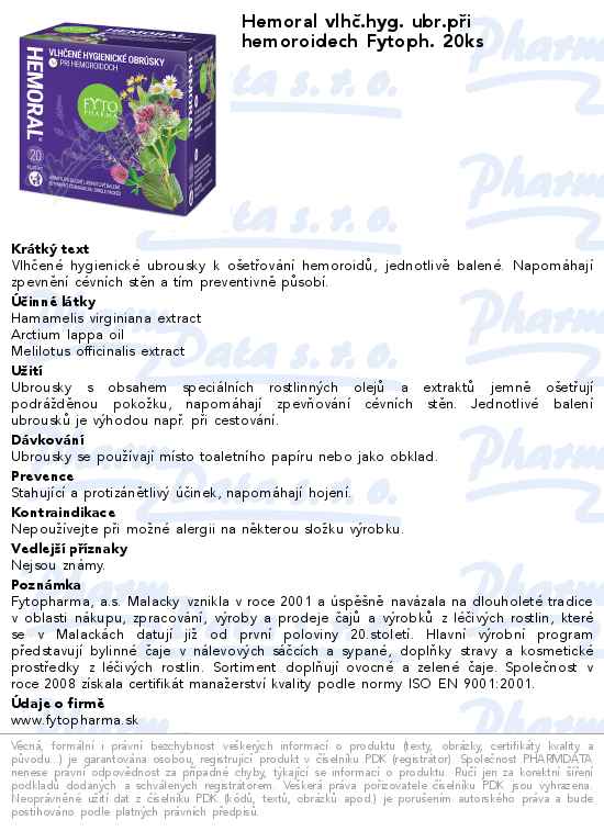 Hemoral vlhč.hyg. ubr.při hemoroidech Fytoph. 20ks